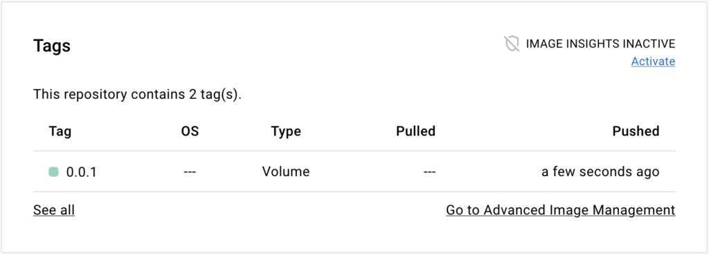 4. Go to the repository page on Docker Hub. The **Tags** section on that page