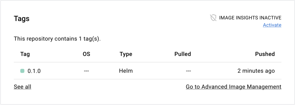 shows the Helm chart tag.